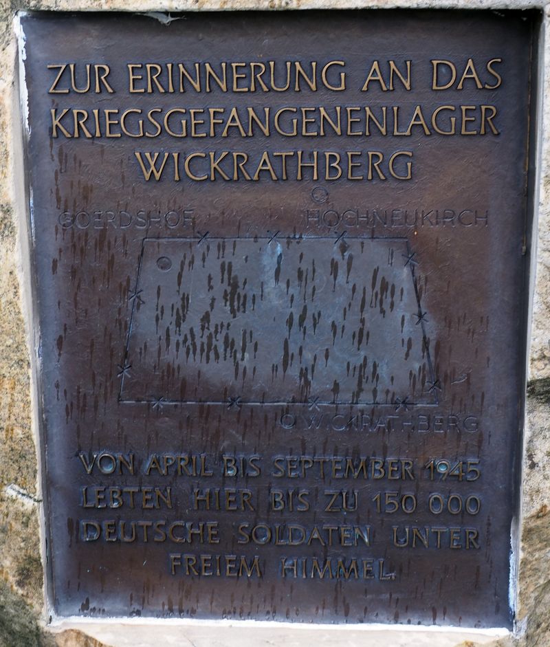 Am Rande der Felder, südöstlich von Wickrathberg, entlang des Hochneukircherwegs nach Hochneukirch, befindet sich ein Gedenkstein (siehe Denkmal auf der Karte). Diese Gedenkstätte befindet sich im ehemaligen Rheinwiesenlager.