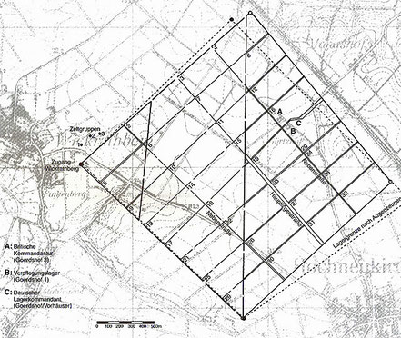 9. Mai 2023Südlich von Mönchen-Gladbach, zwischen den Dörfern Wickrathberg und Hochneukirch, war 1945 ein rautenförmiges Lager auf den Feldern errichtet worden. Heute befindet sich auf dem ehemaligen Rheinwiesenlager ein großes Gewerbegebiet, durch das eine Autobahn führt.